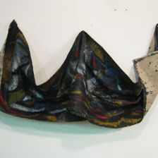 I began exploring the idea of body and landscape by putting my body into the work through action painting and letting the environment affect and even destroy the work.